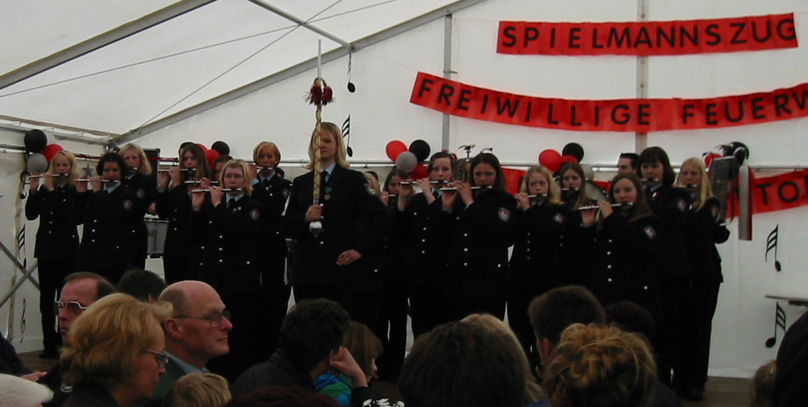"Start Up" - unter diesem Motto hat der Spielmannszug der Freiwilligen Feuerwehr Wolfsburg-Hattorf am 28. April 2002 zu einer Präsentation eingeladen. Dabemarschi stellten die Musiker zahlreiche Veränderungen und Neuerungen vor, an denen man in den vergangenen beiden Jahren intensiv gearbeitet hat. Eine besondere Bedeutung hatte dabei die Vorstellung des neuen Namens und eines dazu entworfenen Logos. Gleichzeitig wurde mit dieser Veranstaltung das 35jährige Bestehen des Zuges gefeiert.