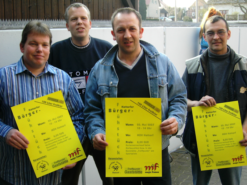 Die Freiwillige Feuerwehr Hattorf und der Spielmannszug „magic flames“ laden alle Anwohner des Ortes am Sonntag, dem 20. Mai, zum ersten „Hattorfer Bürgerfrühstück“ in die Mehrzweckhalle ein. Unterstützung erhalten sie dabei von den Wirten Jörg Gaues und Matthias Hagg der Gaststätte „Treffpunkt“, die für die kulinarische Versorgung der Gäste sorgen.